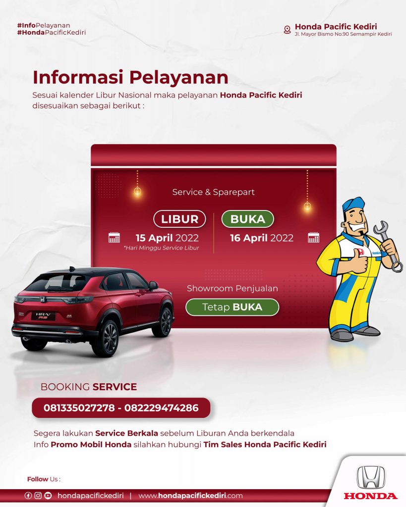 Informasi Pelayanan Libur Wafat Isa Al Masih Sesuai kalender Libur Nasional Memperingati Wafat Isa Al-Masih, maka layanan Honda Pacific Kediri juga akan dilakukan penyesuaian.Untuk bengkel akan tutup sementara pada hari Jumat, 15 April 2022, dan buka kembali pada hari Jumat, 16 April 2022. Informasi penjualan mobil Honda tetap operasional seperti hari biasa. Lakukan service berkala, […]
